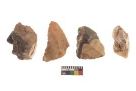 | Description / विवरण | There are n 4 of utilized worked cores and show irregular scar pattern on both dorsal and ventral side. Three are tapering at one end. |