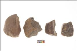 | Description / विवरण | There are n 4 flakes tool; there are multidirectional irregular scar pattern on them; made of short flakes and all four have tapering edges. |