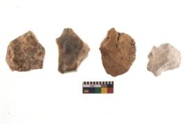 | Description / विवरण | There are n 4 of utilized worked cores and show irregular scar pattern on both dorsal and ventral side. Two have a flat base. |