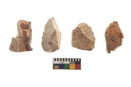 | Description / विवरण | There are n 4 of utilized worked cores and show irregular scar pattern on both dorsal and ventral side. They have sharp edges. |
