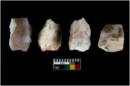 | Description / विवरण | There are n 4 of utilized worked cores and show irregular scar pattern on both dorsal and ventral side. They have a broken tip. |