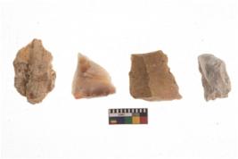 | Description / विवरण | There are n 4 of utilized worked cores and show irregular scar pattern on both dorsal and ventral side. Two have a flat base. |