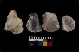 | Description / विवरण | There are n 4 utilized flake cores. One is tapering at one end and three have blunted edges. |