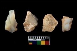 | Description / विवरण | There are n 4 utilized flake cores. There are multi directional irregular scar pattern on them. Two are tapering at one end and two have sharp edges. |