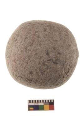 | Description / विवरण | Specimen of a spherical shaped hammer stone with battered surface |