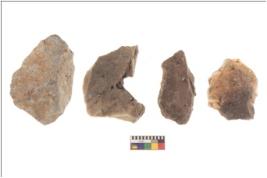 | Description / विवरण | There are n 4 flakes tool; there are multidirectional irregular scar pattern on them; made of short flakes and all four have tapering edges. |