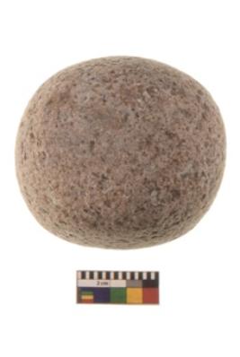 | Description / विवरण | Specimen of a spherical shaped hammer stone with battered surface |