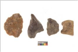 | Description / विवरण | There are n 4 flakes tool; there are multidirectional irregular scar pattern on them; made of short flakes and all four have tapering edges. |