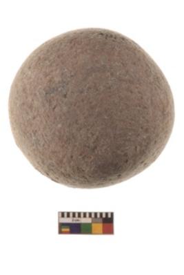 | Description / विवरण | Specimen of a spherical shaped hammer stone with battered surface |
