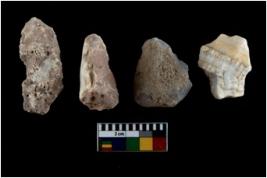 | Description / विवरण | There are n 4 of utilized worked cores and show irregular scar pattern on both dorsal and ventral side. They have sharp edges. |