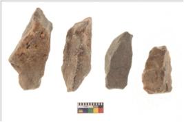 | Description / विवरण | There are n 4 flakes tool; there are large flakes with sides trimmed, Marks of secondary flaking are present on the both the faces.The dorsal is relatively flat. |