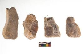 | Description / विवरण | There are n 4 of utilized worked cores and show irregular scar pattern on both dorsal and ventral side. Three have a broken tip. |