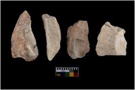 | Description / विवरण | There are n 4 of utilized worked cores and show irregular scar pattern on both dorsal and ventral side. Three have a broken tip. |