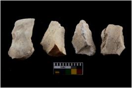 | Description / विवरण | There are n 4 of utilized worked cores and show irregular scar pattern. Two have a flat base. |
