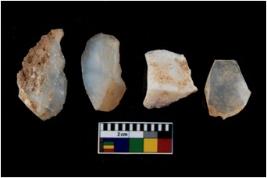 | Description / विवरण | There are n 4 utilized flake cores. There are multi directional irregular scar pattern on them. Two are tapering at one end and two have sharp edges. |
