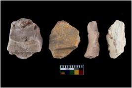 | Description / विवरण | There are n 4 of utilized worked cores and show irregular scar pattern on both dorsal and ventral side. Two are elongated in shape. |