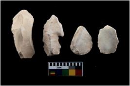 | Description / विवरण | There are n 4 of utilized worked cores and show irregular scar pattern on both dorsal and ventral side. Two are elongated in shape. |