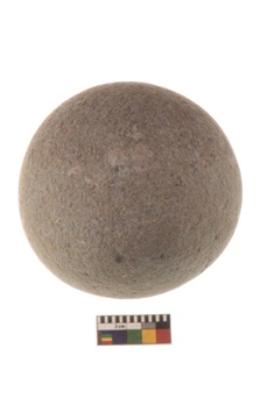 | Description / विवरण | Specimen of a spherical shaped hammer stone with battered surface |