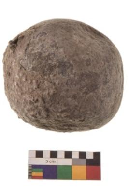 | Description / विवरण | Specimen of a spherical shaped hammer stone with battered surface |