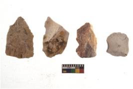 | Description / विवरण | There are n 4 of utilized worked cores and show irregular scar pattern on both dorsal and ventral side. Three are tapering at one end. |