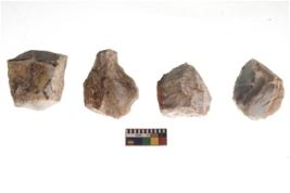 | Description / विवरण | There are n 4 of utilized worked cores and show irregular scar pattern. Two have a broken tip. |