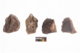 | Description / विवरण | There are n 4 of utilized worked cores and show irregular scar pattern on both dorsal and ventral side. Two have broken tip. |