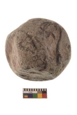 | Description / विवरण | Specimen of a hammer stone roughly rounded in shape. |