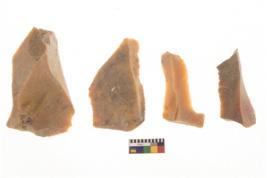 | Description / विवरण | There are n 4 flakes tool; there are multidirectional irregular scar pattern on them; made of short flakes and all four have tapering edges. |