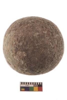 | Description / विवरण | Specimen of a spherical shaped hammer stone with battered surface |