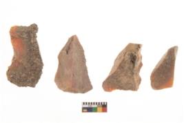 | Description / विवरण | There are n 4 flakes tool; there are multidirectional irregular scar pattern on them; made of short flakes and all four have tapering edges. |