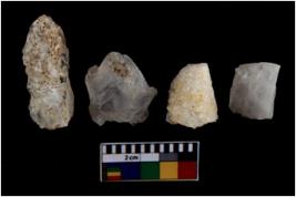 | Description / विवरण | There are n 4 utilized flake cores. One is tapering at one end and three have blunted edges. |