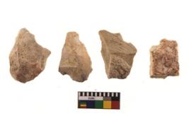 | Description / विवरण | There are n 4 of utilized worked cores and show irregular scar pattern on both dorsal and ventral side. Three are tapering at one end. |