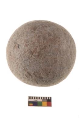 | Description / विवरण | Specimen of a spherical shaped hammer stone with battered surface |
