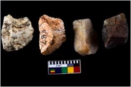 | Description / विवरण | There are n 04 objects; among them one is arc shape along with sharp edges. Three of them are flake core .Two are tapering at one end. |