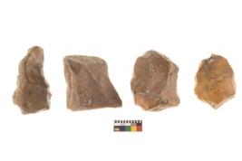| Description / विवरण | There are n 4 flakes tool; there are multidirectional irregular scar pattern on them; made of short flakes and all four have tapering edges. |