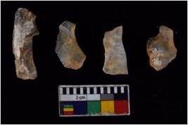 | Description / विवरण | There are n 4 of utilized worked cores and show multidirectional irregular scar pattern on both dorsal and ventral sides. |