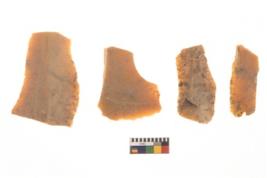 | Description / विवरण | There are n 4 flakes tool; there are multidirectional irregular scar pattern on them; made of short flakes and all four have sharp edges. |