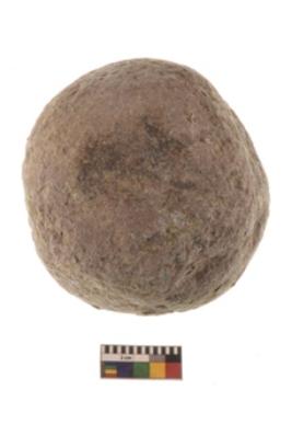 | Description / विवरण | Specimen of a spherical shaped hammer stone with battered surface |