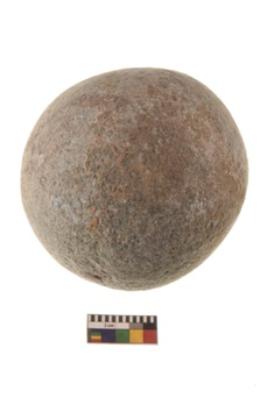 | Description / विवरण | Specimen of a spherical shaped hammer stone with battered surface |