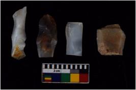 | Description / विवरण | There are n 4 flakes tool; there are large flakes with sides trimmed, Marks of secondary flaking are present on the both the faces.The dorsal is relatively flat. |