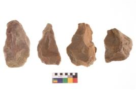 | Description / विवरण | There are n 4 flakes tool; there are multidirectional irregular scar pattern on them; made of short flakes and all four have tapering edges. |