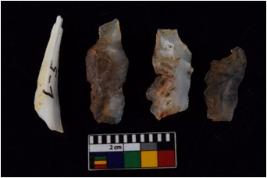| Description / विवरण | There are n 4 flakes tool; there are large flakes with sides trimmed, Marks of secondary flaking are present on the both the faces.The dorsal is relatively flat. |