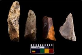 | Description / विवरण | There are n 04 objects; they can be identified as blade core, blade removing marks are visible, some are tapering at one end. All are thin in nature. |