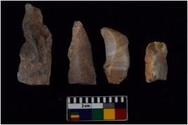 | Description / विवरण | There are n 4 flakes tool; there are large flakes with sides trimmed, Marks of secondary flaking are present on the both the faces.The dorsal is relatively flat. |