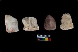 | Description / विवरण | There are n 4 of utilized worked cores and show irregular scar pattern on both dorsal and ventral side. They have a flat base. |