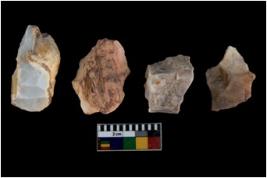 | Description / विवरण | There are n 4 of utilized worked cores and show irregular scar pattern on both dorsal and ventral side. Three have a broken tip. |