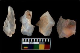 | Description / विवरण | There are n 4 utilized flake cores. There are multi directional irregular scar pattern on them. Two are tapering at one end and two have sharp edges. |