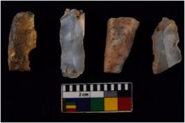 | Description / विवरण | There are n 4 flakes tool; there are large flakes with sides trimmed, Marks of secondary flaking are present on the both the faces.The dorsal is relatively flat. |