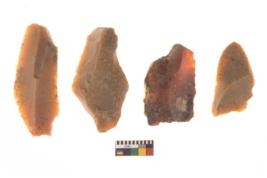 | Description / विवरण | There are n 4 flakes tool; there are multidirectional irregular scar pattern on them; made of short flakes and all four have tapering edges. |