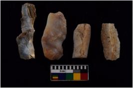 | Description / विवरण | There are n 4 flakes tool; there are large flakes with sides trimmed, Marks of secondary flaking are present on the both the faces.The dorsal is relatively flat. |